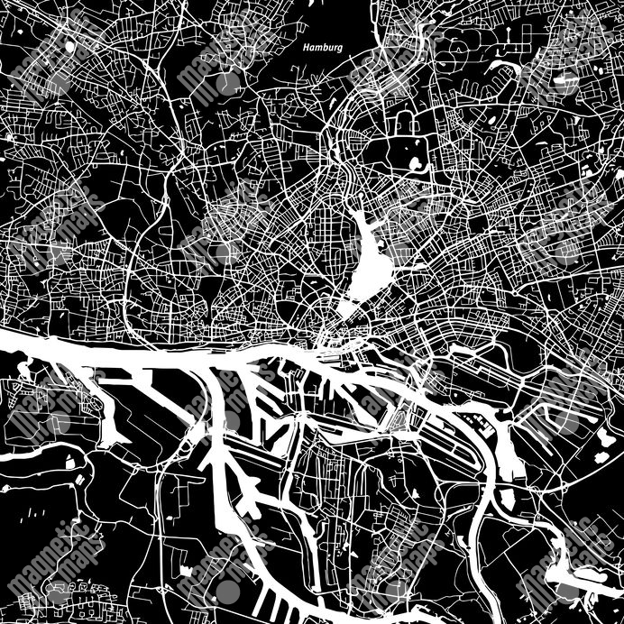 Magnetická mapa Hamburgu, ilustrovaná, čierna