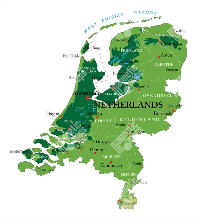 Magnetická mapa Holandska, geografická, reliéfna