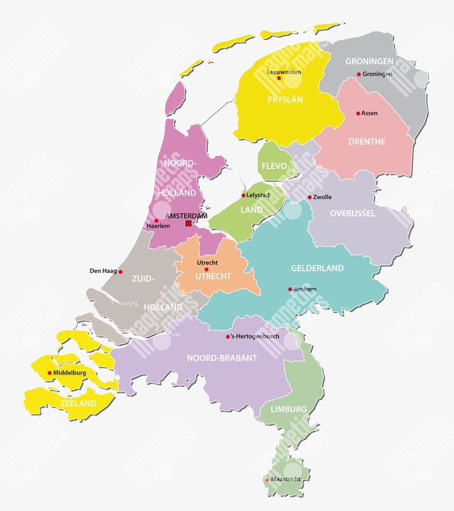 Magnetická mapa Holandska, ilustrovaná, farebná