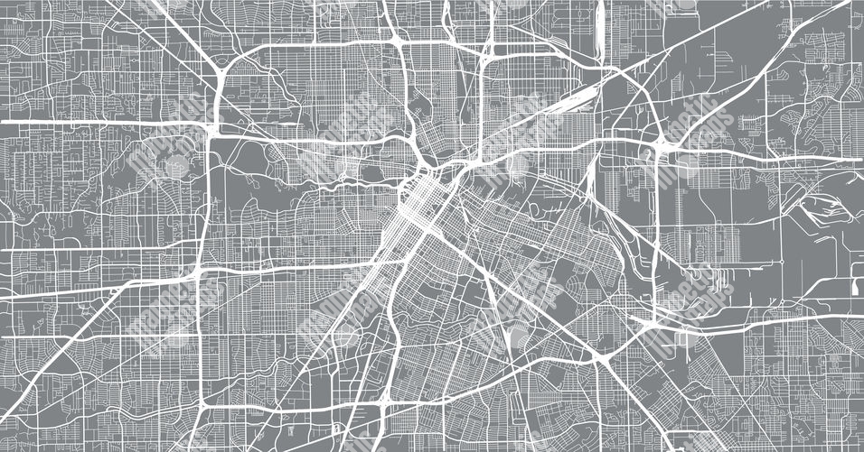 Magnetická mapa Houstone, ilustrovaná, bielo-šedá