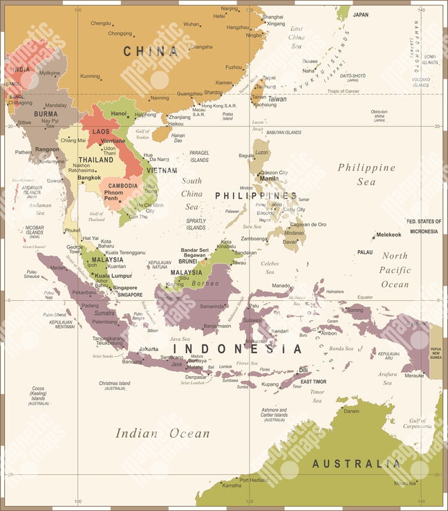 Magnetická mapa, ilustrovaná, vintage