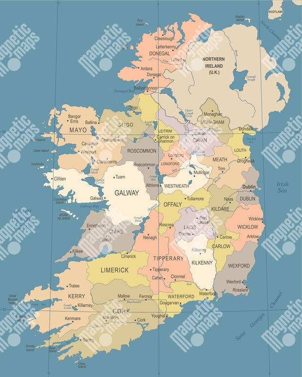 Magnetická mapa Írska, detailná, farebná