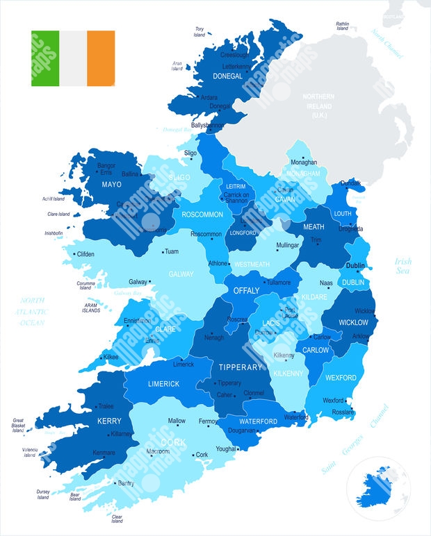 Magnetická mapa Írska, detailná, modrá