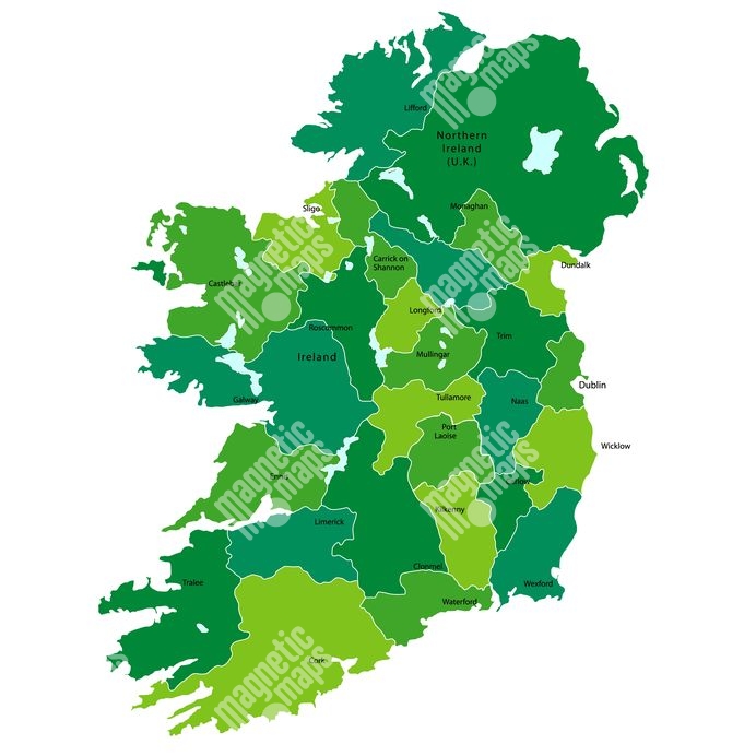 Magnetická mapa Írska, ilustrovaná, zelená
