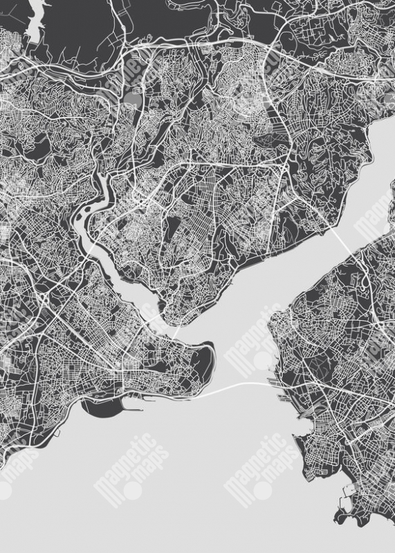 Magnetická mapa Istanbulu, ilustrovaná, čierno-biela