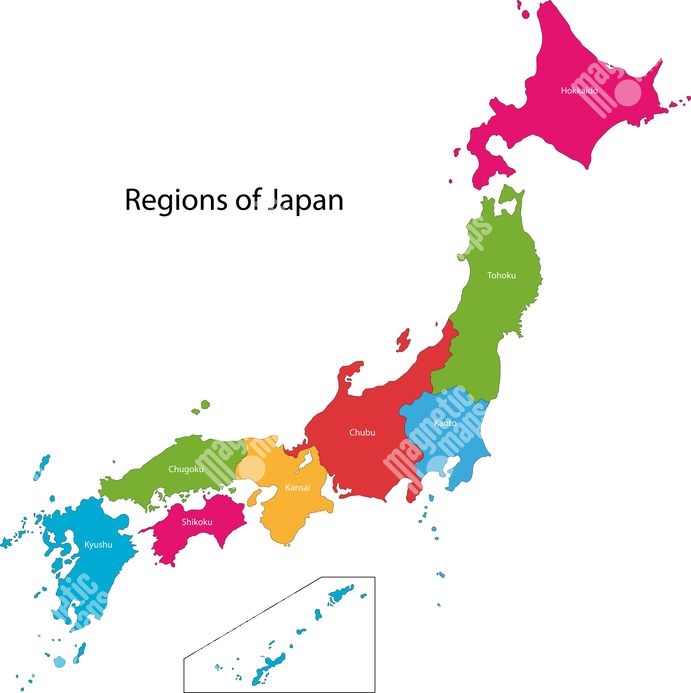 Magnetická mapa Japonska, ilustrovaná, farebná