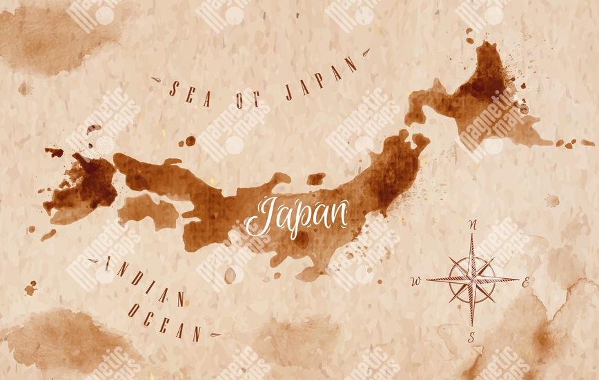 Magnetická mapa Japonska, watercolor, hnedá