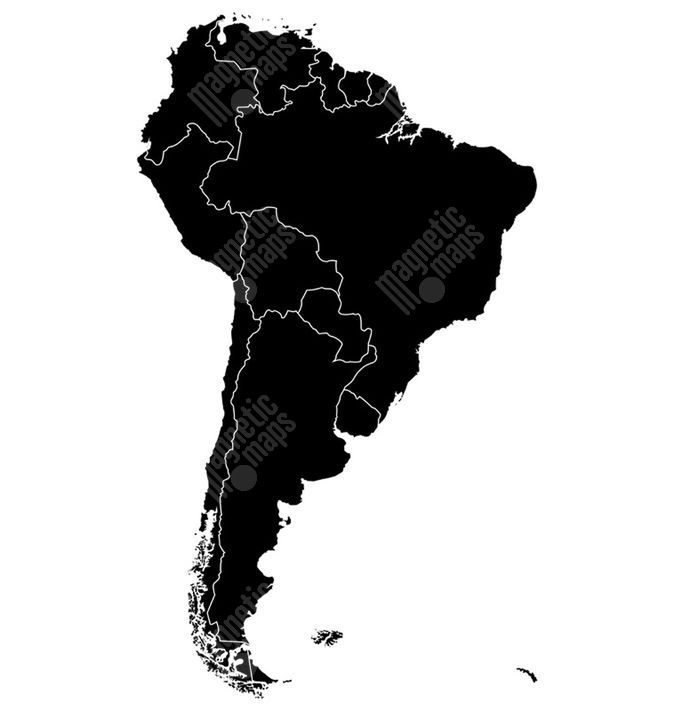Magnetická mapa Južnej Ameriky, ilustrovaná, čierna