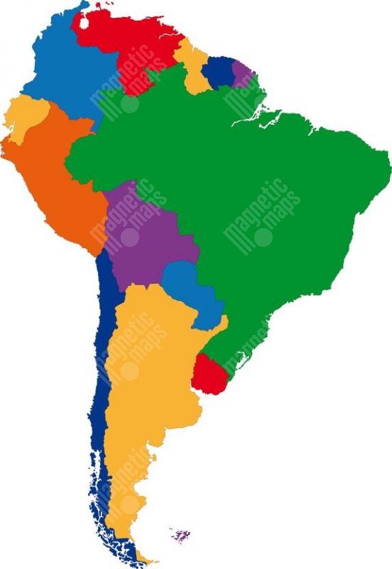 Magnetická mapa Južnej Ameriky, ilustrovaná, farebná