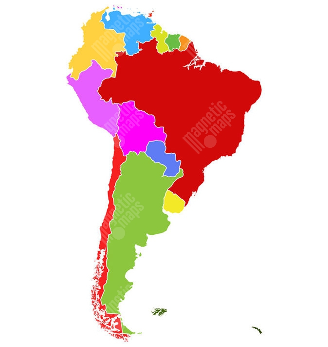 Magnetická mapa Južnej Ameriky, ilustrovaná, farebná