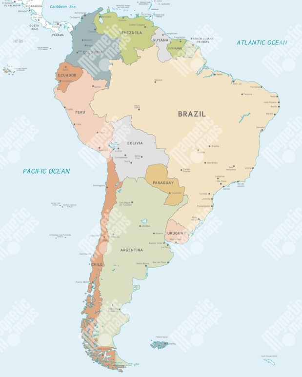 Magnetická mapa Južnej Ameriky, vektorová, farebná