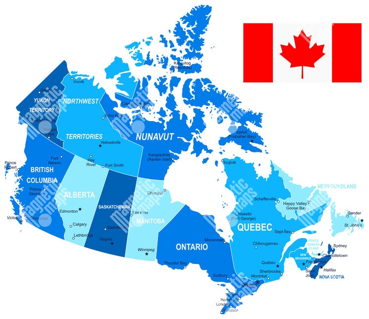 Magnetická mapa Kanady, ilustrovaná, modrá