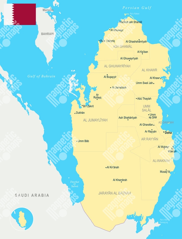 Magnetická mapa Kataru, detailná, žlto-modrá
