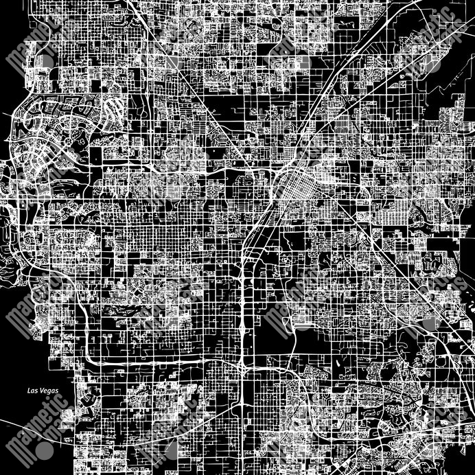 Magnetická mapa Las Vegas, ilustrovaná, čierno-biela