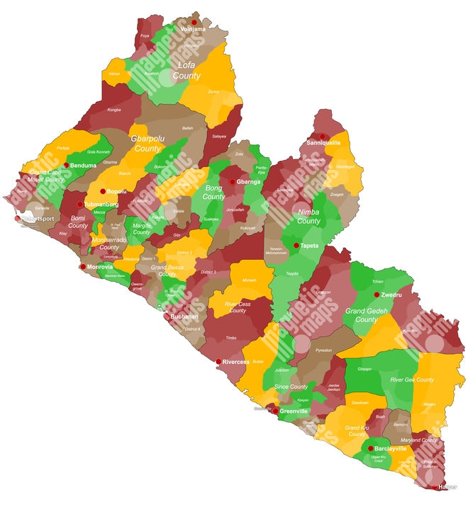 Magnetická mapa Libérie, administratívna, farebná