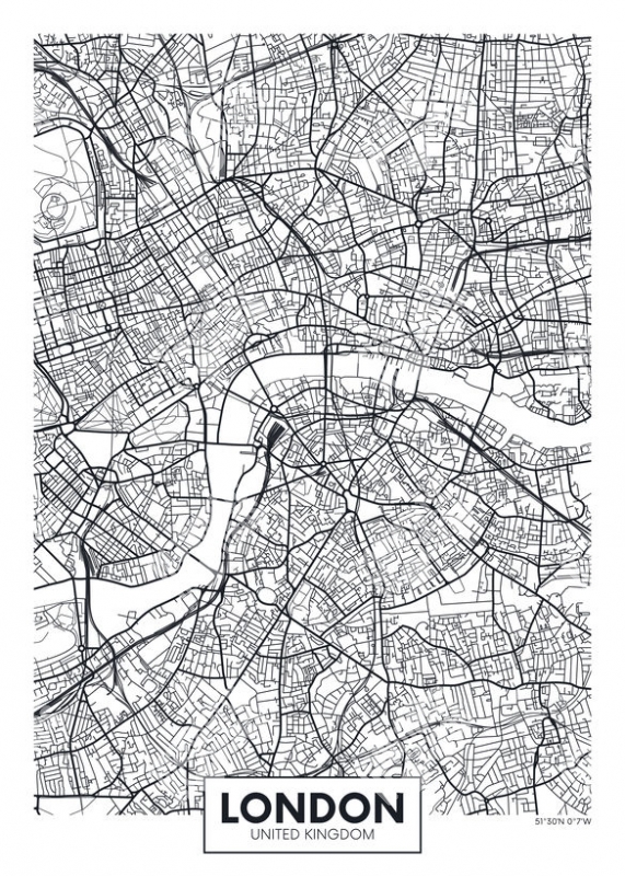 Magnetická mapa Londýna, ilustrovaná, čierno-biela