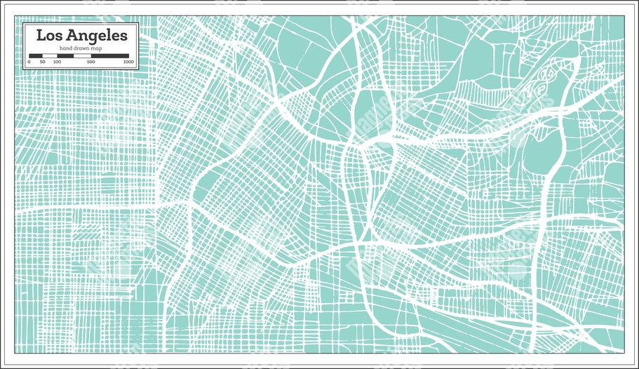 Magnetická mapa Los Angeles, ilustrovaná, modrá