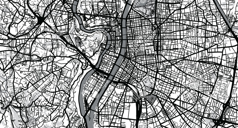 Magnetická mapa Lyonu, ilustrovaná, čierno-biela