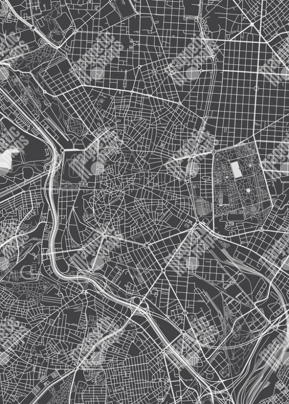 Magnetická mapa Madridu, ilustrovaná, čierno-biela