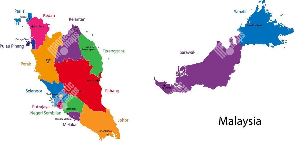 Magnetická mapa MALAJZIe, administratívna, farebná