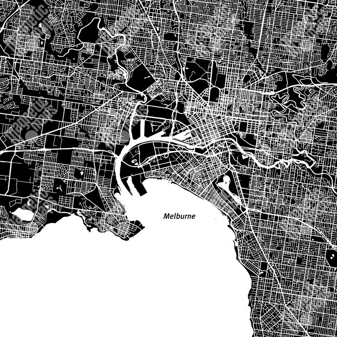 Magnetická mapa Melbourne, ilustrovaná, čierno-biela