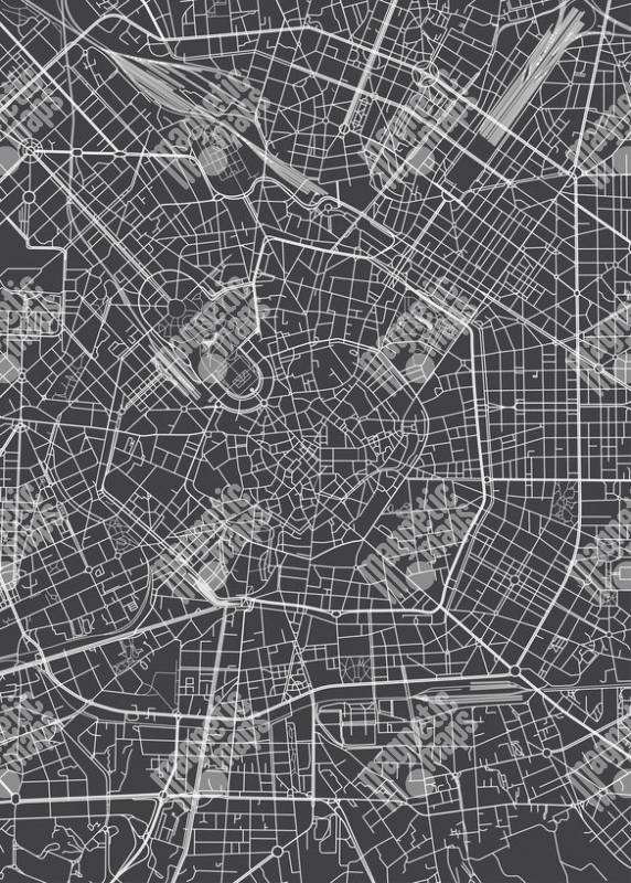 Magnetická mapa Milána, ilustrovaná, čierno-biela