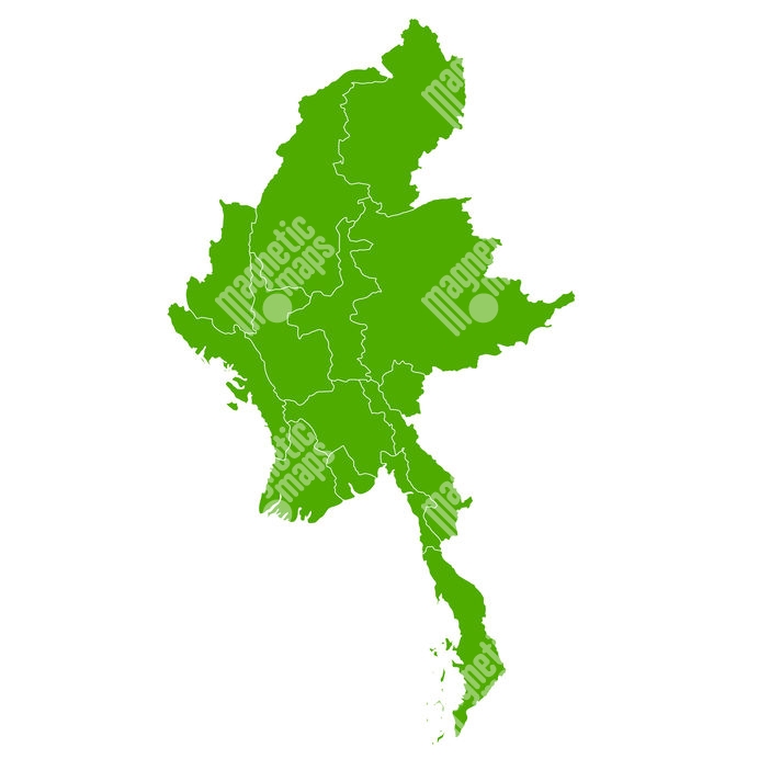 Magnetická mapa Mjanmarsku, ilustrovaná, zelená