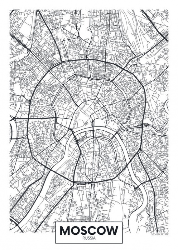 Magnetická mapa Moskvy, ilustrovaná, čierno-biela