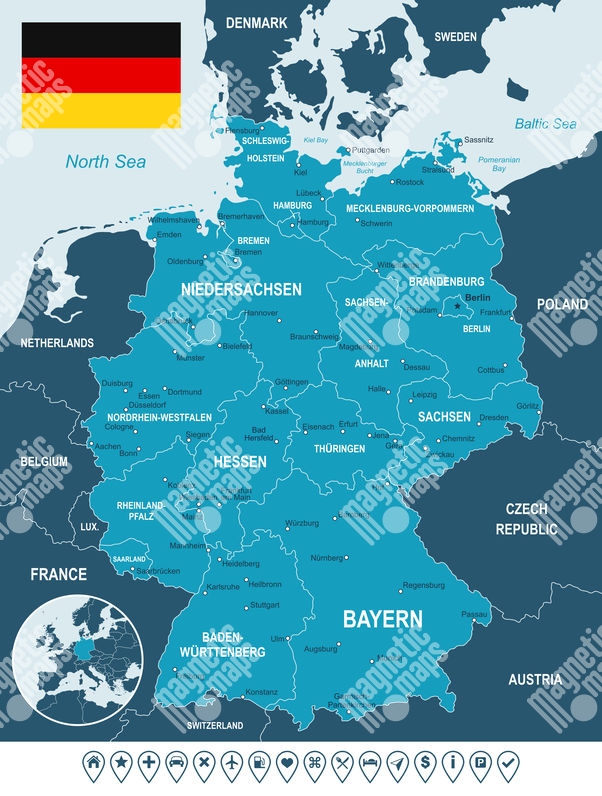 Magnetická mapa Nemecka, ilustrovaná, modrá