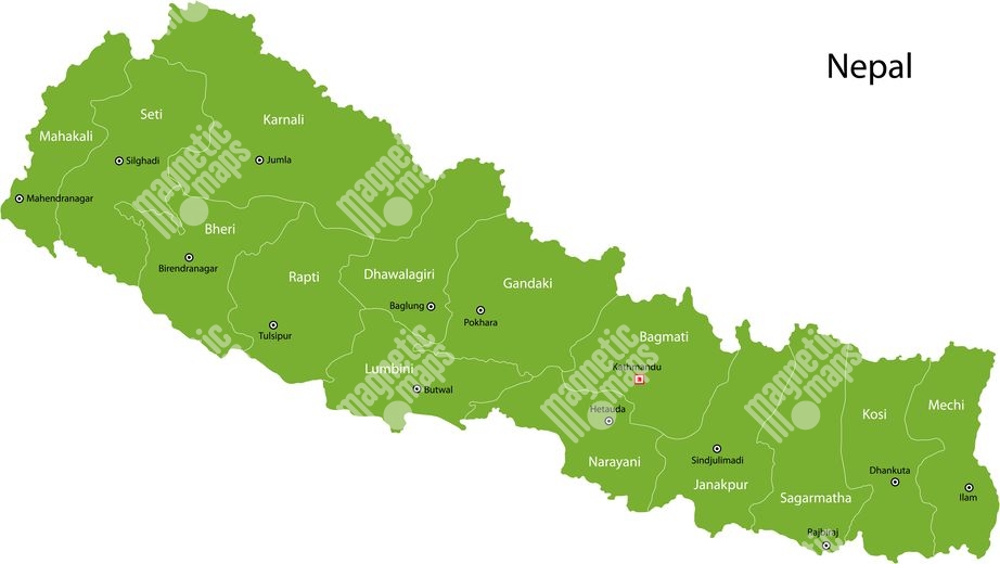 Magnetická mapa Nepálu, ilustrovaná, zelená