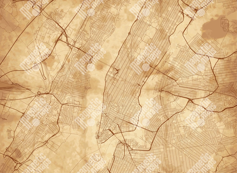 Magnetická mapa New yorku, ilustrovaná, béžová