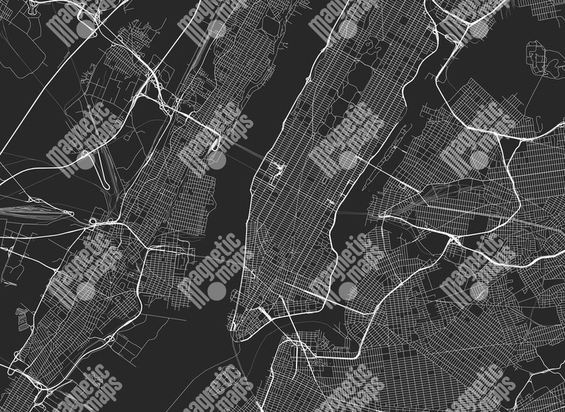 Magnetická mapa New yorku, ilustrovaná, čierna