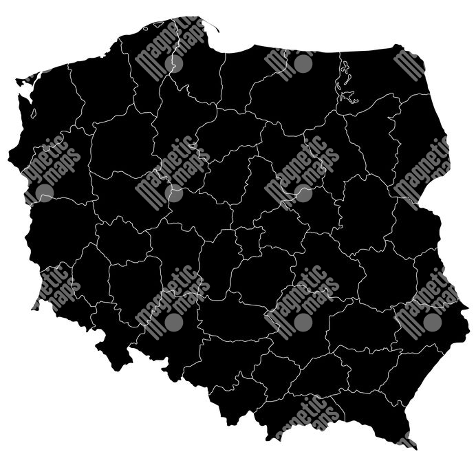 Magnetická mapa Poľska, ilustrovaná, čierna