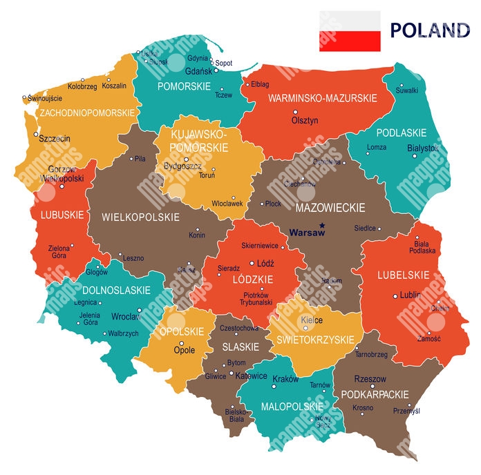 Magnetická mapa Poľska, ilustrovaná, farebná