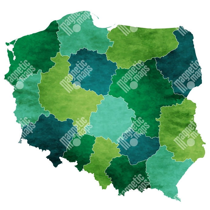 Magnetická mapa Poľska, ilustrovaná, zelená