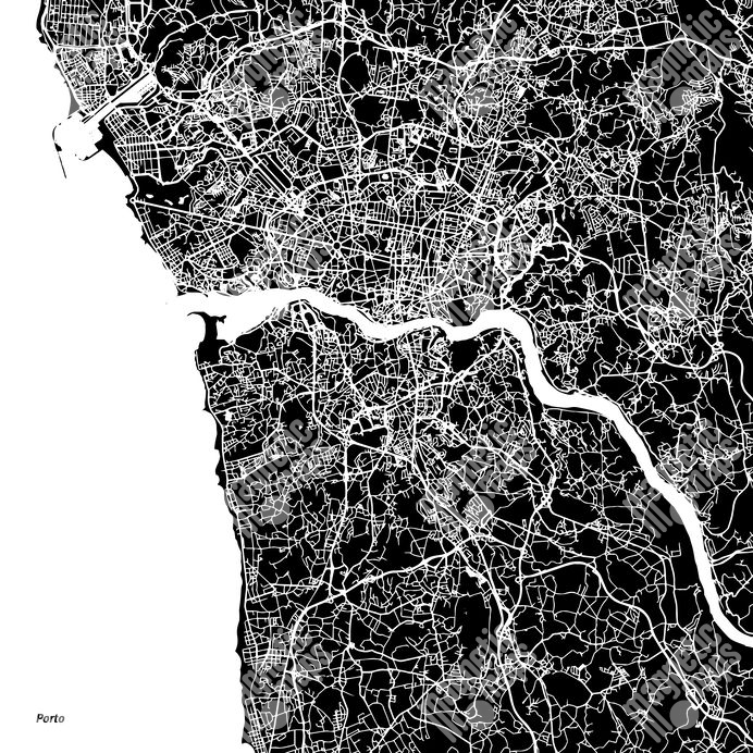 Magnetická mapa Porta, ilustrovaná, čierno-biela