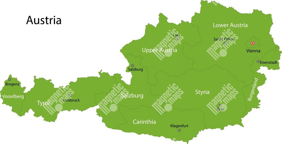 Magnetická mapa Rakúska, ilustrovaná, zelená