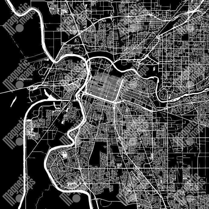 Magnetická mapa Sacramenta, ilustrovaná, čierno-biela