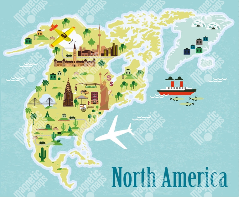 Magnetická mapa Severnej Ameriky, kreslená, farebná