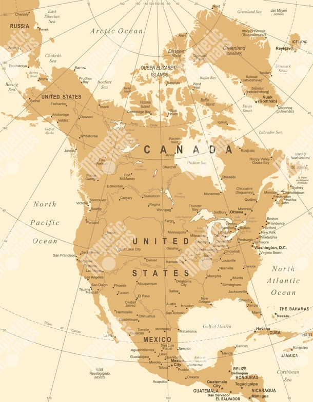 Magnetická mapa Severnej Ameriky, vintage, béžová