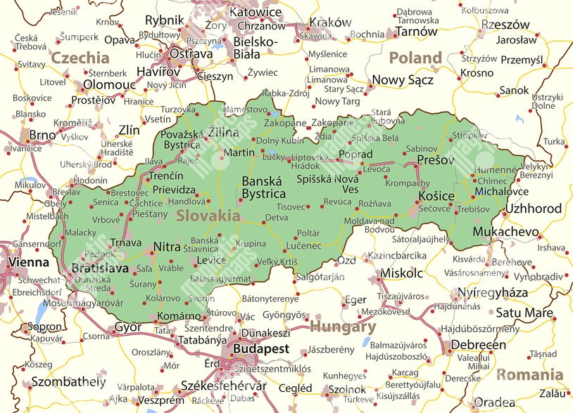Magnetická mapa Slovenska, cesty, farebná
