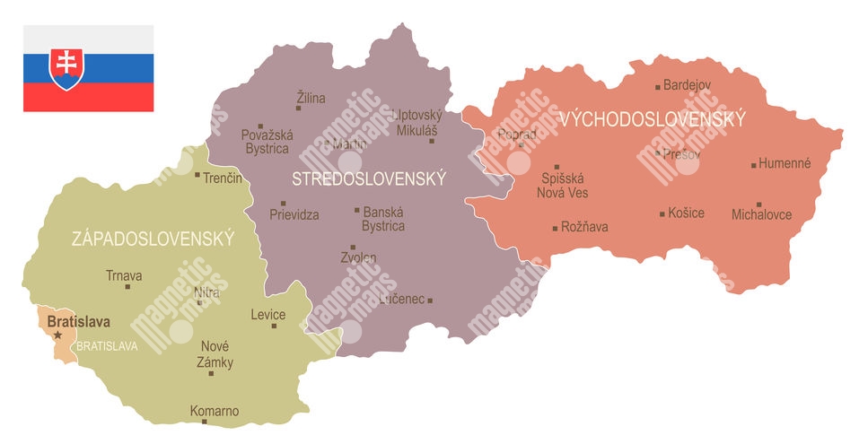 Magnetická mapa Slovenska, vintage, farebná