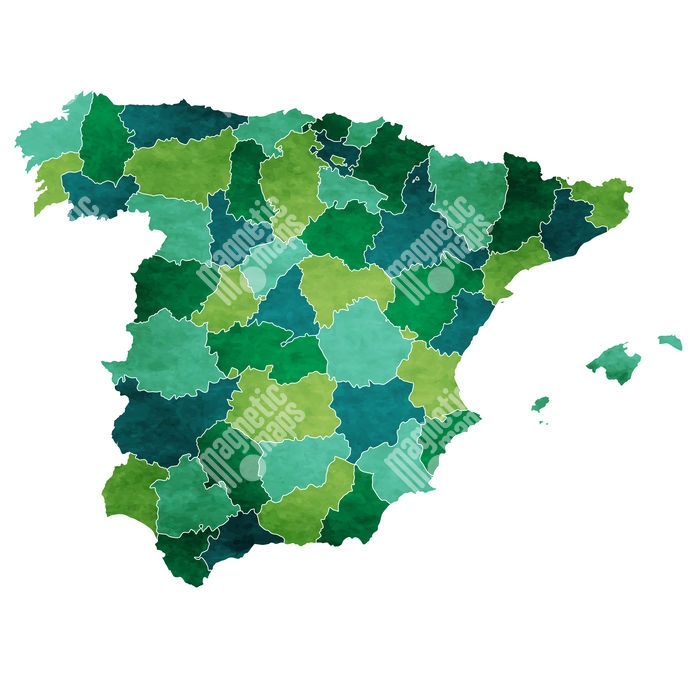 Magnetická mapa Španielska, ilustrovaná, zeleno-modrá