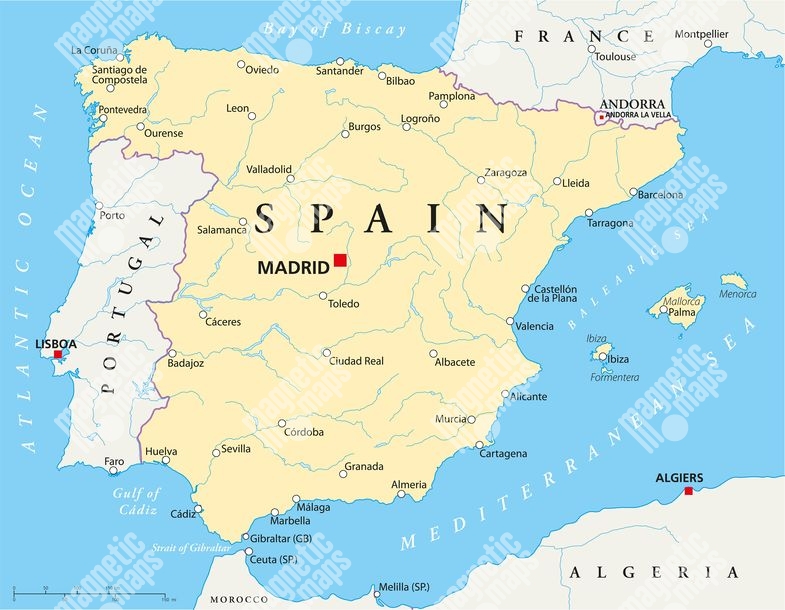 Magnetická mapa Španielska, politická, béžová