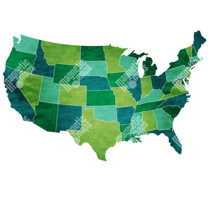 Magnetická mapa Spojených štátov Amerických, ilustrovaná, zelená