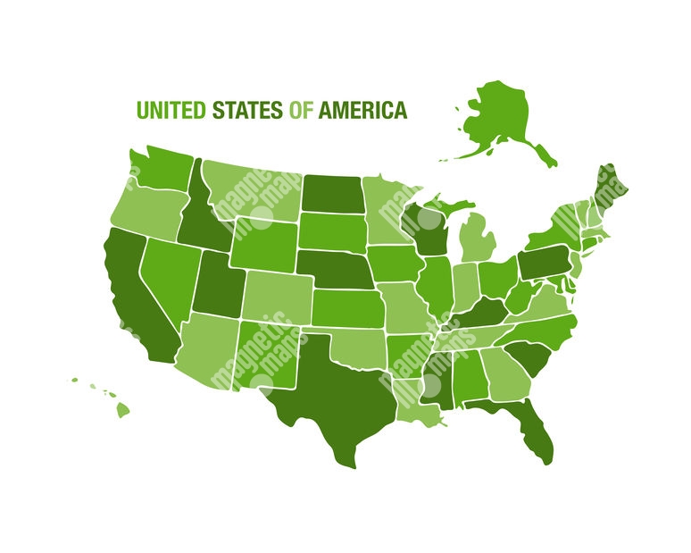 Magnetická mapa Spojených štátov Amerických, ilustrovaná, zelená