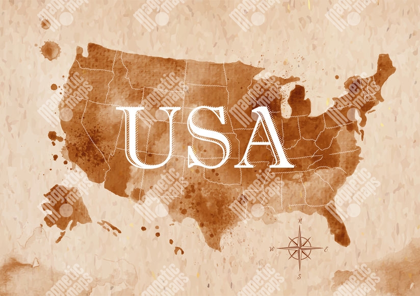 Magnetická mapa Spojených štátov Amerických, watercolor, hnedá