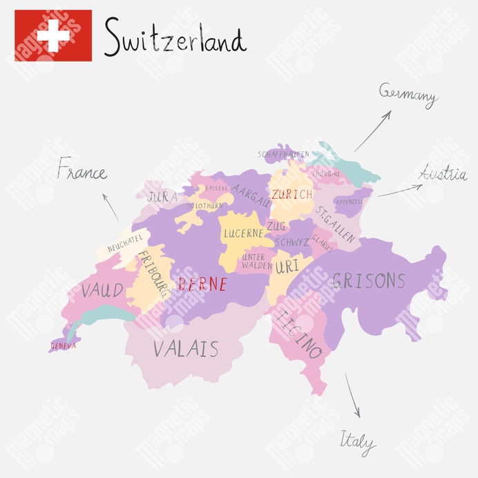 Magnetická mapa Švajčiarska, ilustrovaná, farebná
