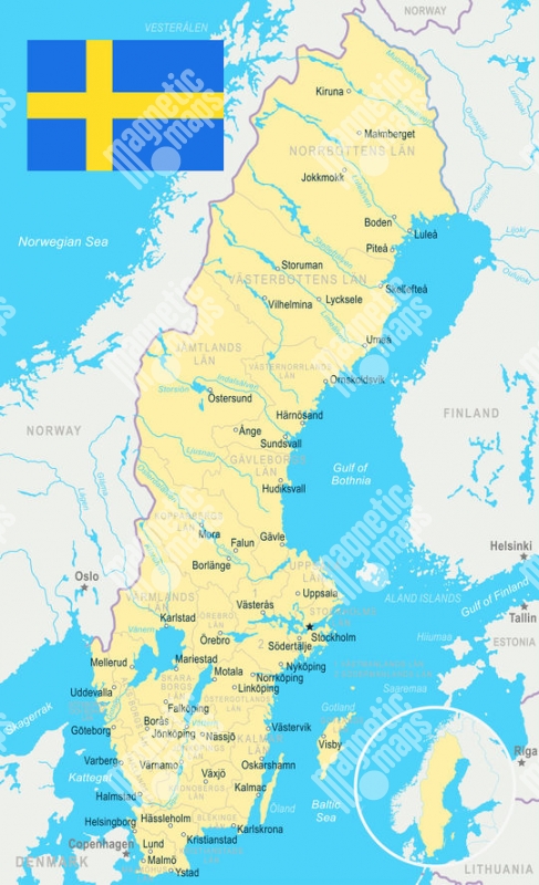 Magnetická mapa Švédska, ilustrovaná, farebná