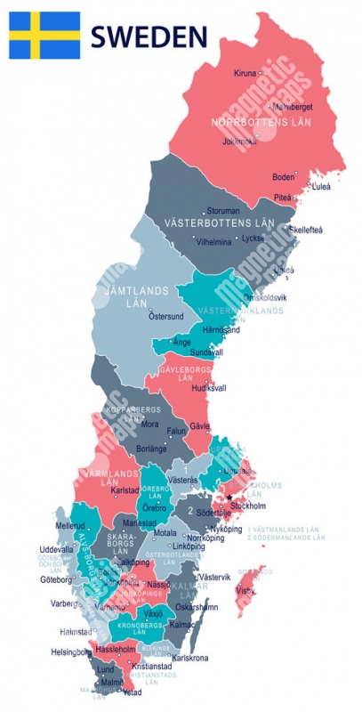 Magnetická mapa Švédska, ilustrovaná, farebná